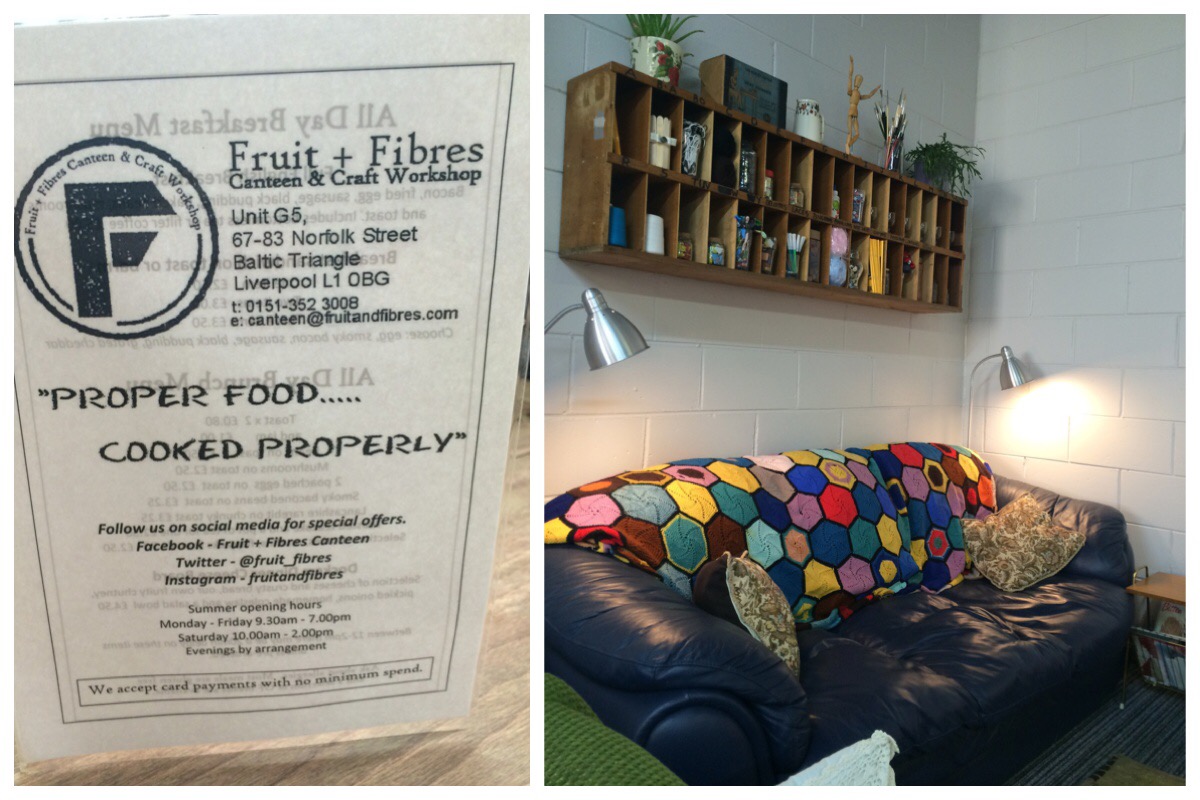 After my sat nav tried to take me to Birkenhead I managed to ignore it and found my way to the Fruit & Fibre Canteen & Craft Workshop, Norfolk Street, Liverpool. Such a lovely little place – it’s a cafe/craft workshop so you can sit and have your cuppa and do your cross stitch (for example).